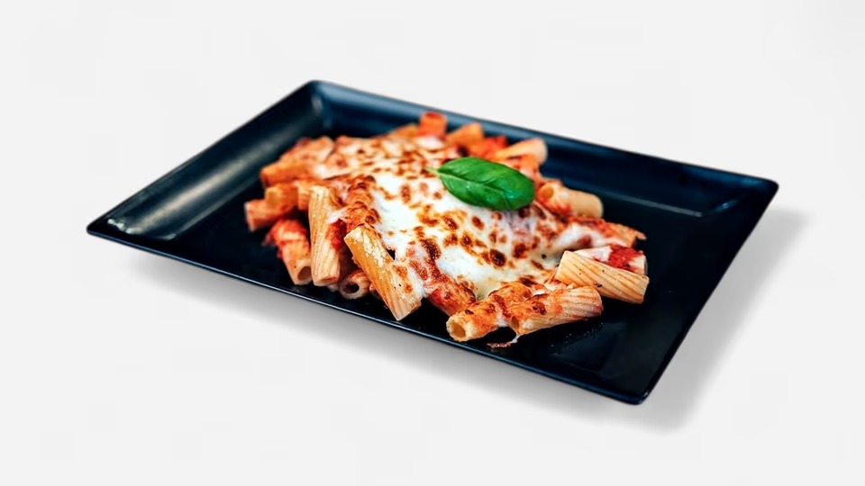 Rigatoni, goveđe meso, domaći umak od rajčice, sir Edamer